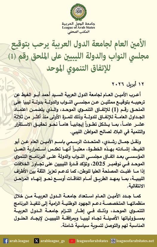 طرابلس 13 أبريل 2026 ( وال ) _ بحث مدير عام مركز الاتصال المحلي (1415) بالوزارة، أيمن قاسم، خلال اجتماع تنسيقي عقده مع ممثلي المجلس الدنماركي للاجئين، آفاق التعاون في مجالات الحماية ... إقرأ المزيد