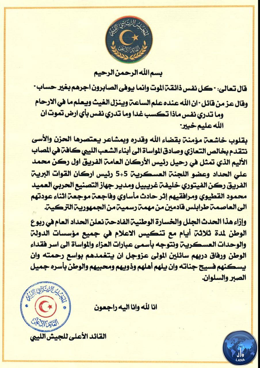 رئيس المجلس الرئاسي – القائد الاعلى للجيش يعلن الحداد العام لمدة ثلاثة أيام .