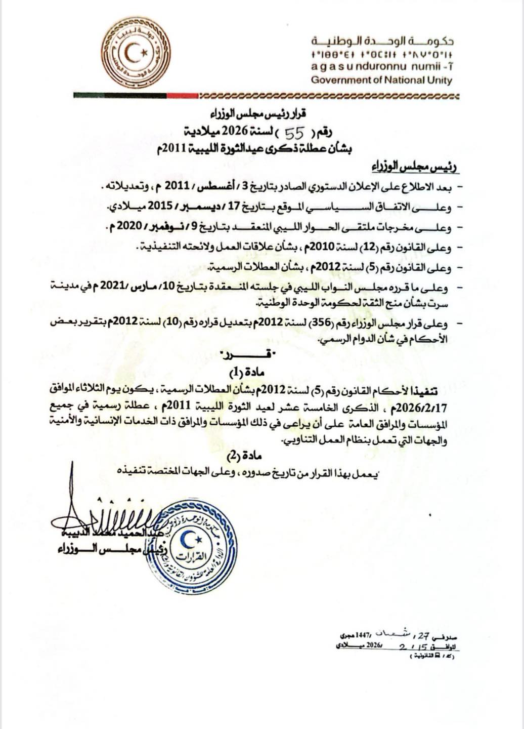 طرابلس 16 فبراير 2026 ( وال ) - قرر الاتحاد الليبي لكرة القدم انطلاق منافسات مرحلة الإياب من الدوري الليبي الممتاز لكرة القدم يوم الجمعة المقبل ... إقرأ المزيد