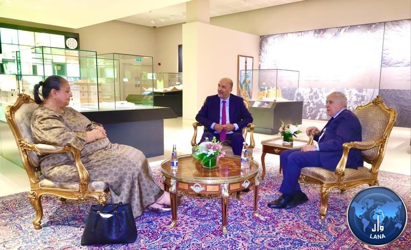 Muscat, November 23, 2025 (LANA) – Presidential Council member Musa Al-Koni met today, Sunday, in the Omani capital, Muscat, with the Special Representative of the UN Secretary-General and Head of the UN Support Mission in Libya, Hanna Tetteh, the Lebanese Minister of Culture, and former UN Special Representative to Libya, Ghassan Salama.
