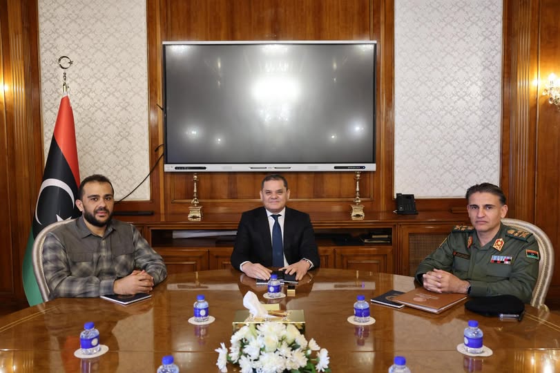 Tripoli, April 28, 2026 (LANA) – Prime Minister of the Government of National Unity and Minister of Defense, Abdulhamid Dbeibah, met today, Tuesday, with Undersecretary of the Ministry of Defense, Lieutenant General Abdul Salam Al-Zoubi, and Chief of the General Staff, Lieutenant General Salah Al-Din Al-Namroush, to discuss the state of the military establishment and its overall readiness.
